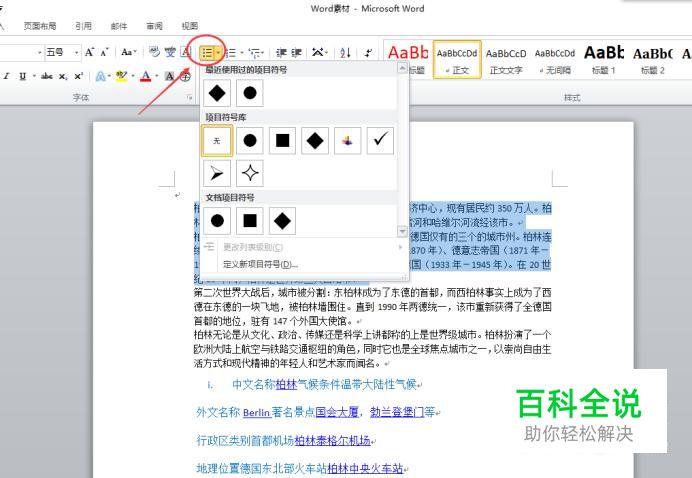 word怎样为段落设置项目符号与编号
