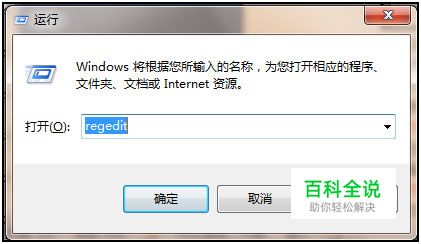 点击 “开始”-> “运行”,输入“regedit”,回车;如下图所示。
