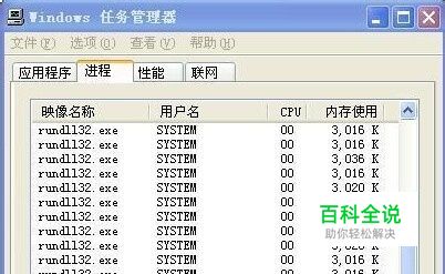 另外,在任务管理器里面,按名称排序,看看任务管理器里面是否有大量的“rundll32”,如果有大量的rundll32,这也是导致电脑不能关机的原因之一,右键结束进程即可。