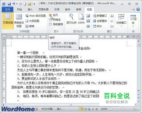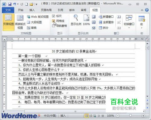 在Word2010中显示或隐藏标尺、网格线和导航窗格