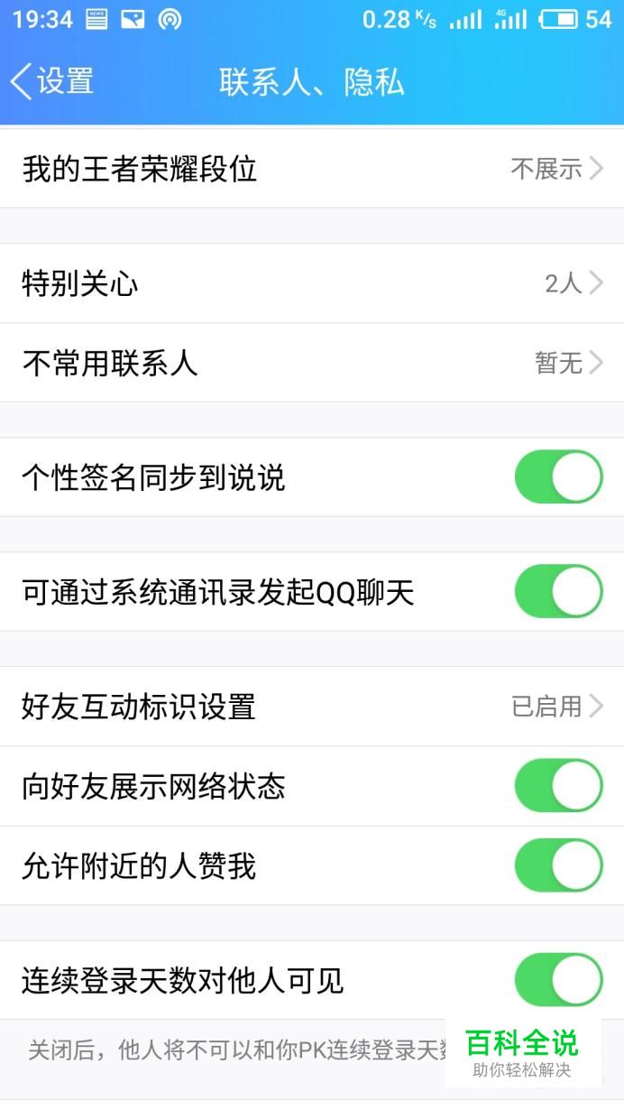 进入设置界面后找到联系人隐私按钮,点击打开进入主页。