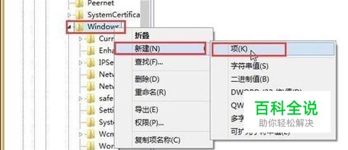 依次展开“HKEY_LOCAL_MACHINE\SOFTWARE\Policies\Microsoft\Windows”,然后选中“windows”点击右键新建项,如图所示: