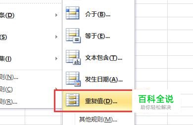 随后,在弹出来的选项中,我们点击"重复值"。接着系统会弹出图2的对话框,在这里你可以设置重复值的填充颜色,然后点击确定。