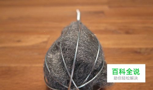 将钢丝棉剪出 4″ x 8″ 大小,然后用手把它拉阔到 8″ x 8″,让更多空气进入,有助完全燃烧,最后塞进打蛋器内 ▲用铁线系起来