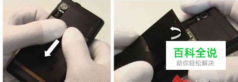 1.首先,我们要拆分电池壳,按照图示压住电池门,然后向下滑动;