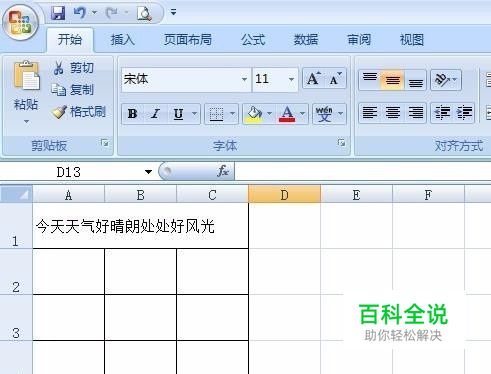 第一步:如下图所示,我们可以看到第二句话也没有设置换行,显然一个单元格放不下。