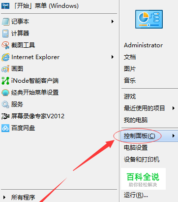 在桌面左下角点击“开始菜单”,打开控制面板,如下图所示: