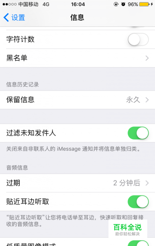 iMessage 发图省流量设置→信息,然后底部有一个低质量图像模式,开启即可,避免每次发图给朋友都是原图耗流量,还能有效避免发送时间等待过长的情况发生。