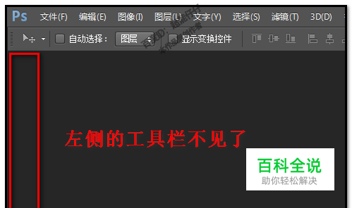 比如,现在,我们已启动了PS,打开主界面,发现,左侧原来有的工具栏不见了。 那个晕了,怎样调出来呢。