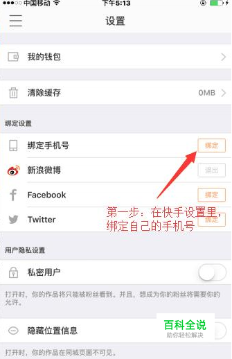 2、在快手设置里绑定自己的手机号;
