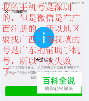 如果填写的手机号和你的微信注册地区不一致会失败。 注意是微信注册地的手机号,不是你自己手机号所在地。 比如 我的手机号是深圳的, 但我的微信是回广西老家的时候注册的。那么你就得填写的辅助手机号就得是广西的。