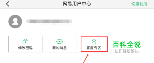 此时手机会转入“网易用户中心”页面,在这里玩家点击“客服专区”按键。