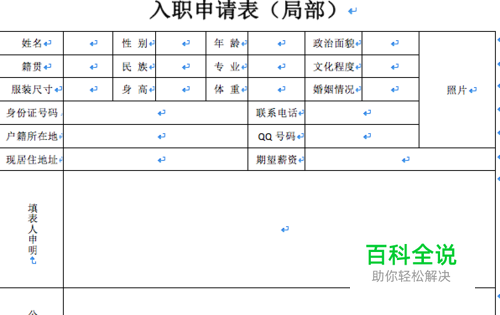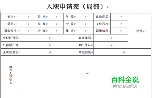 第五步:对齐文本 我们用本系列教程前面所述的方法快速选中整个表格并单击表格工具→布局→对齐方式→水平居中,以使文本水平居中。 选中文字“填表人申明”和“公司各部门意见“,单击对齐方式→文字方向。文本变成垂直居中。
