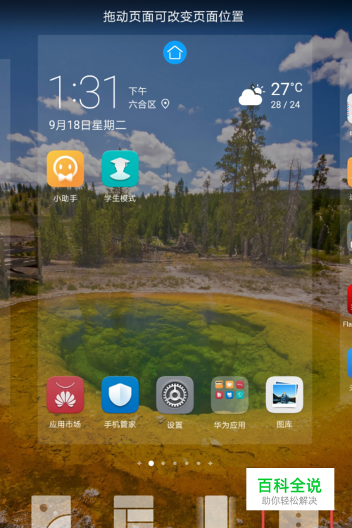 首先,我们打开我们的华为手机,然后我们长按手机桌面的空白处;