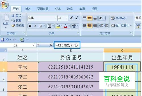 EXCEL从身份证号码中提取出生年月
