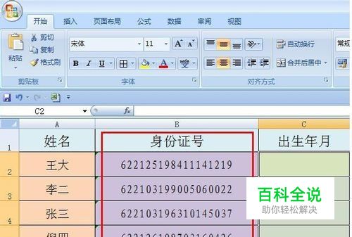 在C2单元格中输入函数“=MID(B2,7,8)”,然后用填充柄把下面的单元格也刷一下,就看到效果了, 注意了:“=MID(B2,7,8)”意思是在B2单元格中提取第7个字符后的8个字符,也就是第7和第14这8个数字。