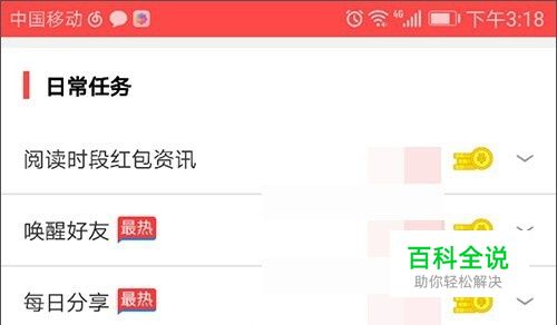 第三种方法我们称之为“做任务” 在个人中心页面点击“日常赚钱”,新页面顶部是签到,连续签到可以获得不同数量的金币奖励