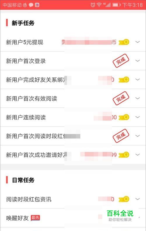 继续向下滑动此界面,可以看到新手任务和日常任务两个分类,新手任务就是指的您在刚刚接触淘最热点时需要做的任务,日常任务就是指的您每天做这些任务就可以获得金币