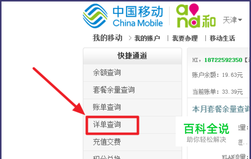 登入后,在左侧可以看到【详单查询】,点击进入