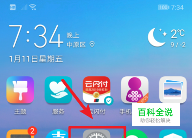 我们解锁华为手机进入后,在手机中选择设置的图标进入。