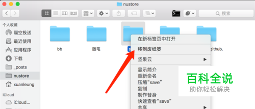 方法一,最常用的,就是鼠标右键,然后移动到废纸篓,或者拖动到废纸篓