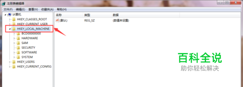 在弹出的选项卡中找到HKEY_LOCAL_MACHINE,点击。