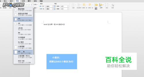 点击大小,将默认A4大小修改为A3。