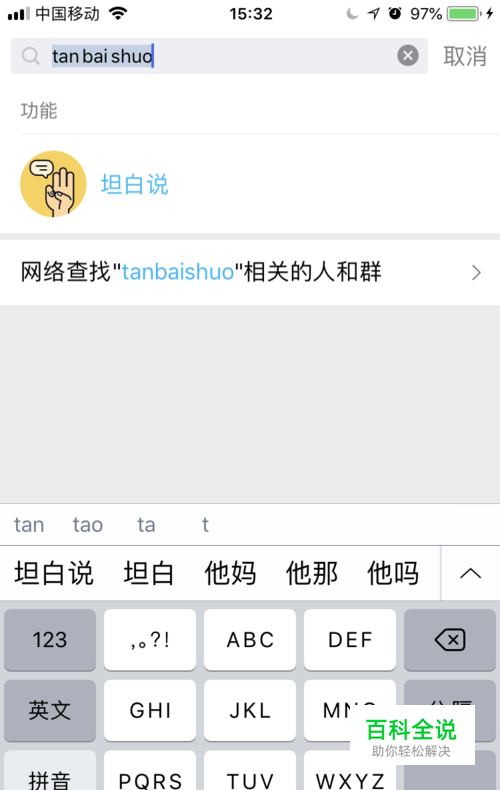 首先我们在手机上打开手机QQ,并在QQ主界面中上方的搜索框输入"坦白说“这一选项进行搜索,且打开进入。