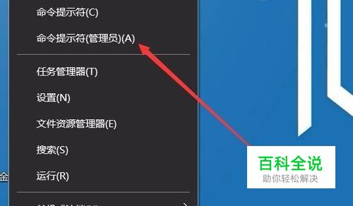 右键点击Windows10桌面左下角的开始按钮,在弹出菜单中选择“命令提示符(管理员)”菜单项
