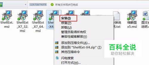 【第三步】右键ShellExt-X4.msi,点击卸载。大家也许会奇怪,为什么要先安装一次,然后又卸载呢?其实先重新安装只是为了完善ShellExt 环境,这样才能干净的卸载掉Windows Shell Extension。