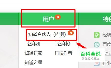 在百度知道主页面点击绿色突出显示中的用户菜单按键,并选择【知道合伙人】