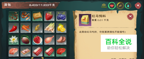 接下来在制作完成的框里就可以看到制作好的红马饲料了,点击收进背包即可,建议多做几份再去捕捉火马红马。