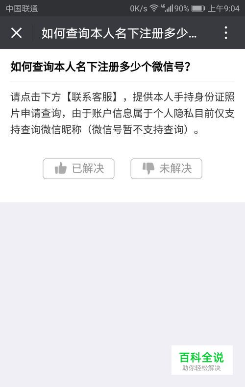 第一项就是如何查询本人名下注册了多少个微信号,点击联系客服,接着按照操作输入身份证号和身份证上的照片,两天后客服会给你回复