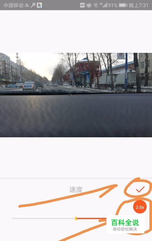 拖动视频播放速度滑块设置该段视频播放速度,然后点按对号标志,再次点按对号。