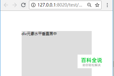 页面所有代码。可以直接复制所有代码,粘贴到新建html文件,保存后打开即可看到效果。 所有代码: <!DOCTYPE html> <html> <head> <meta charset="UTF-8"> <title></title> <style> .test{ width : 300px; height : 200px; background-color: #ddd; position: absolute; left: 50%; top: 50%; transform: translate(-50%, -50%); } </style> </head> <body> <div class="test">div元素水平垂直居中 </div> </body> </html>