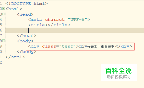 新建一个html文件,然后创建一个<div>标签,然后给这个标签设置一个class,案例中class为test 代码: <div class="test">div元素水平垂直居中 </div>