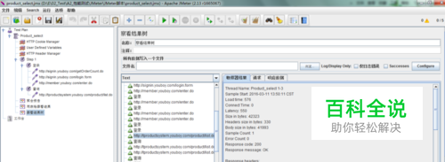 product_select_20160311001.jtl是刚才执行测试的结果,使用JMeter图形界面打开即可看到查看详细报告内容,如下图: