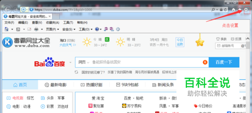 打来IE浏览器,然后点击浏览器右上角齿轮状的设置图标。