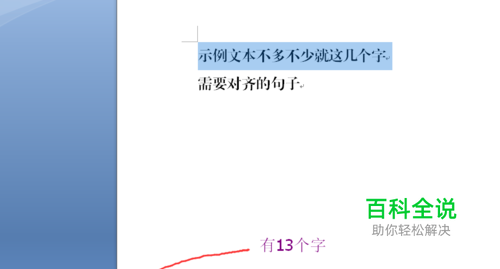 这里演示的是将第二行的7个中文字与上面一行的13个中文字对齐的方法。