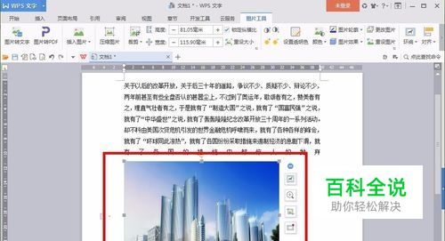 接下来图片就会插入到文档中,这个时候的图片应该是很大的,调整图片到合适的大小,然后拖动到要插入的位置。