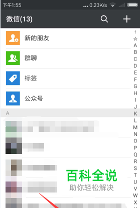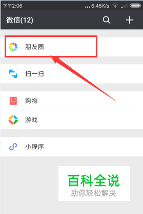 在切换到发现页面后,点击列表项区域中的【朋友圈】,如图所示: