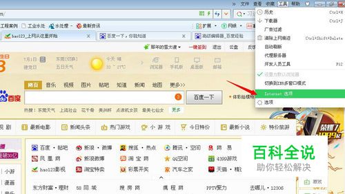 当现hao123主页删除不了的时候,我们点击浏览器页面右上方的“工具”选项。