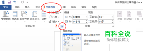 打开需要设置的Word文档,点击“页面布局”,点击右下角的“页面设置”箭头。