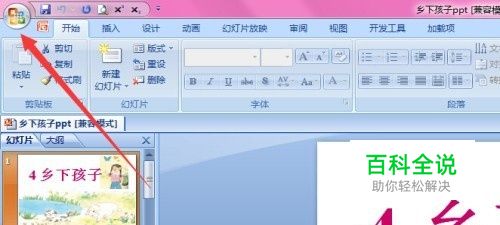 首先打开一个加密的PPT后,点击左上角的Office按钮后,点击下拉菜单中的