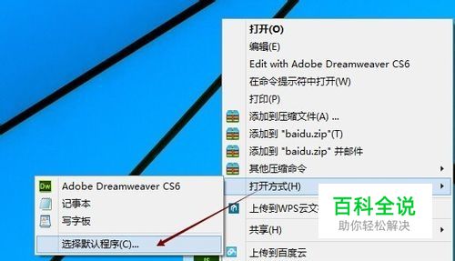 选中要打开的.js文件,点击鼠标右键,选择“打开方式”--->“选择默认程序”,如下图所示。
