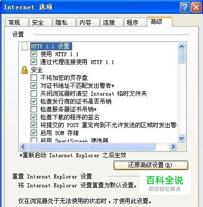 第五步:设置完成,点击确定,这时会提醒你进行重新启动,重启就可以了,再次打开网页就可以正常使用了。如下图所示: