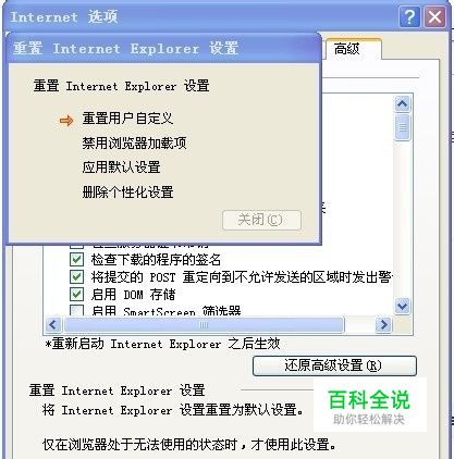 第三步:在“高级”选项,点击“重置”。如下图所示: