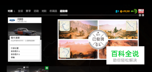 按 m键,打开游戏地图 来到组装车的画面 可以看到需要我们去寻找福特的零件了,共4个