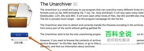 在App Store里面右上角输入The Unarchiver就可以找到软件,点击安装下载即可。