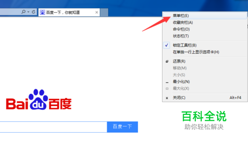 如果没有的话,我们在上面地址栏附近右键单击一下,这样,我们会弹出一个菜单,其中第一个就是菜单栏,我们点击一下。